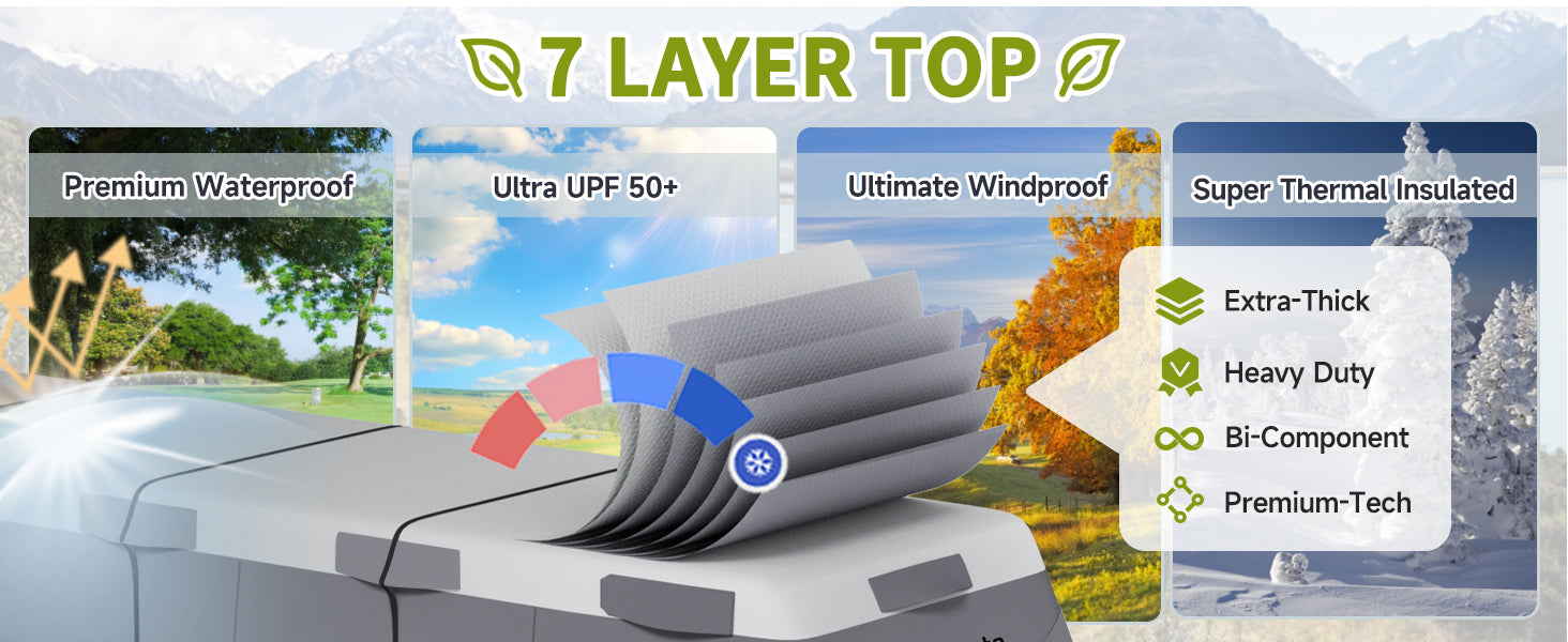 Heavy-duty 7-layer top fabric for superior UV resistance and tear protection