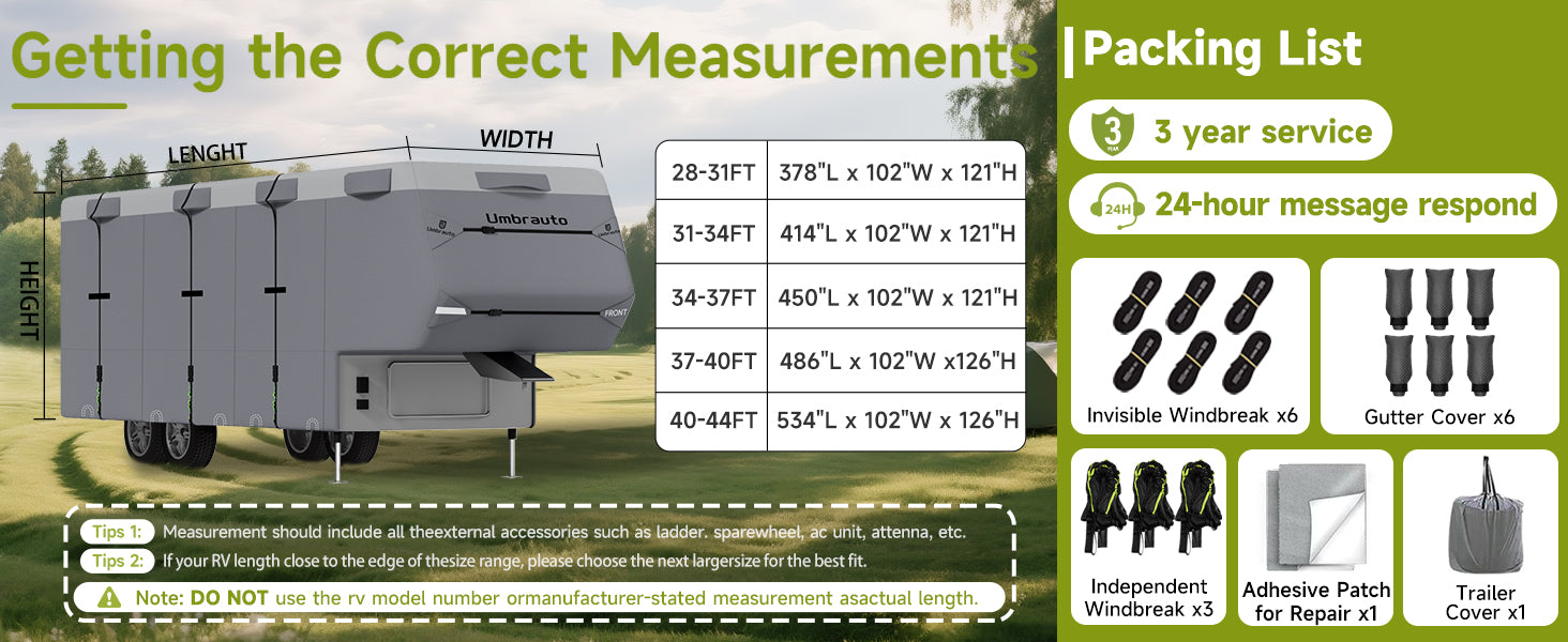 1 × Upgraded 5th Wheel RV Cover (measure before purchase)