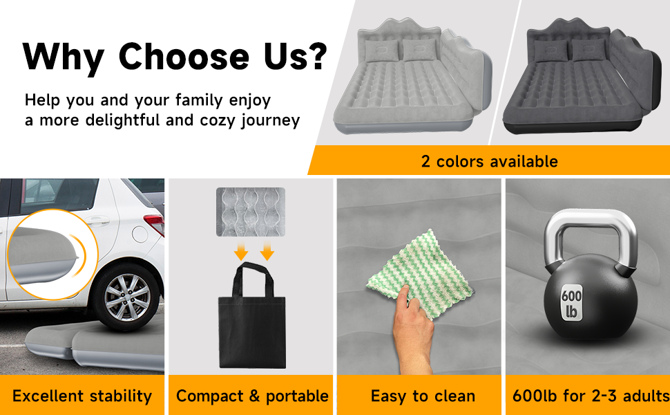 - Multiple Usage Scenarios: Our air mattress has versatile applications, serving as a car air mattress, SUV air mattress, and suitable for car back seats and SUV back seats. Additionally, it can be used in guest bedrooms, hotels, tents, and camping sites. You can use it anytime, anywhere based on your needs.